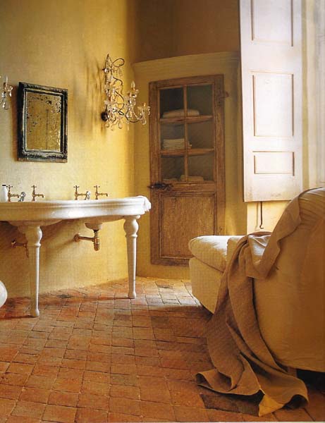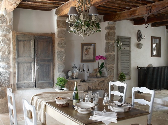 В провансе если камень, то шероховатый, если металл, то с тусклым блеском, если мебель, то с потертостями, в трещинах и сколах.