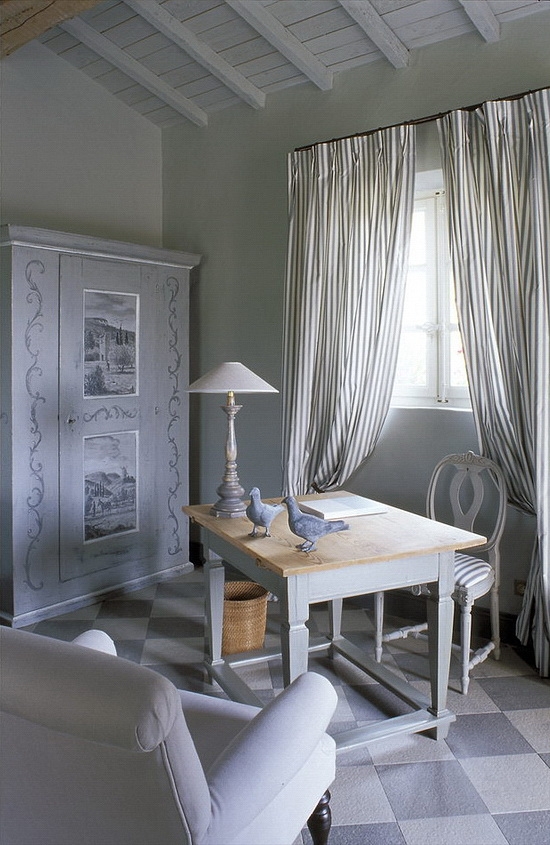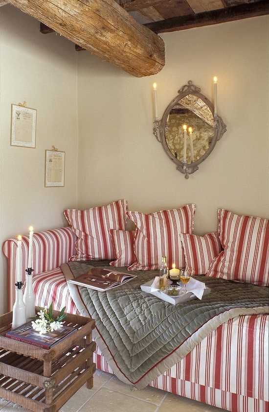 Для прованса характерно сочетание пастельно-голубого и нежно-желтого цветов, символизирующее цветущие луга Прованса. А вот сочетание красный с белым в провансе используется редко.