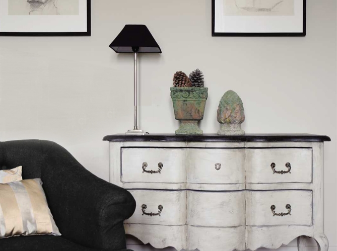 Конечно у мебели должен быть вид будто она верой и правдой служила не одному поколению. Краска на мебели должна быть облупившейся, сами поверхности должны быть с потертостями, мелкими сколами.
