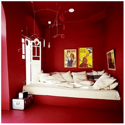 Однако нельзя использовать в больших количествах красный цвет . Он может негативно воздействовать на психику, создать гнетущую атмосферу в комнате. И все же при умелом его использовании он может не только радовать глаз, но и поднимать настроение. На большой плоскости этот цвет можно ослабить за счет добавок серого.