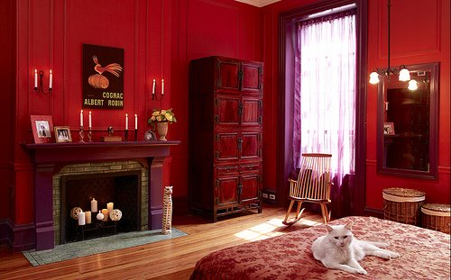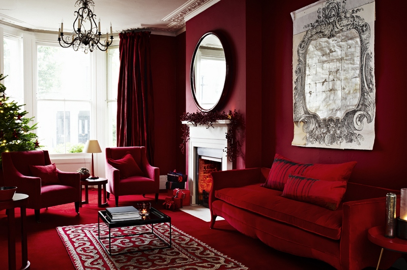 Для реализации их цветового предпочтения необязательно окрашивать красным все стены комнат. Бывает достаточно ввести его в качестве акцентного цвета, выбрав для него композиционно значимое место. В интерьере он зачастую является доминирующим.