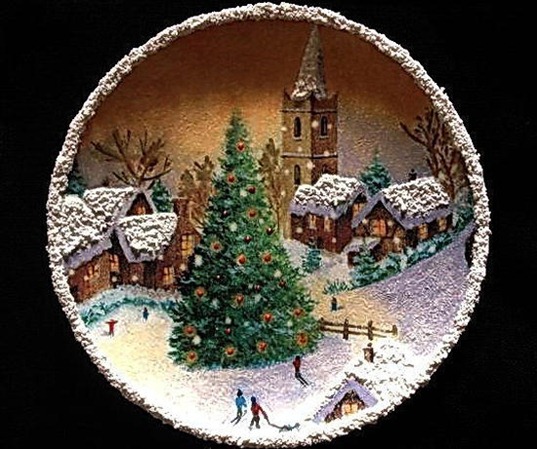 Приятно вручить на Новый год своей лучшей подруге подарок, сделанный своими руками. Что подарить? У нас есть для вас идея по созданию вот такой замечательной зимней декоративной тарелки.