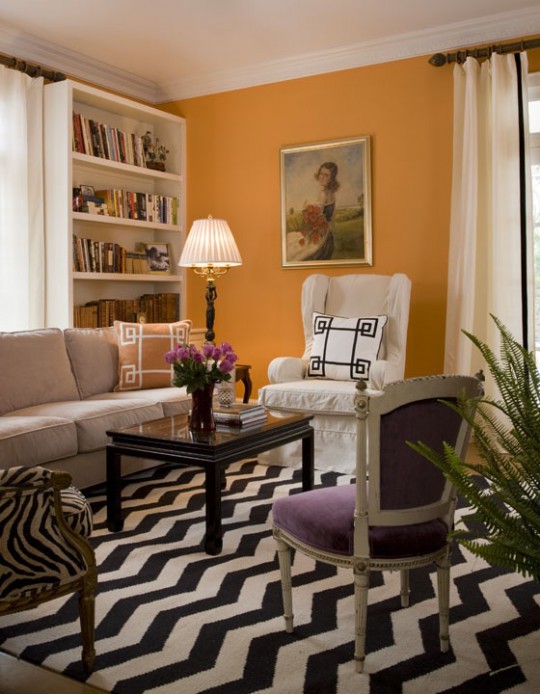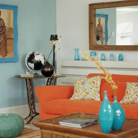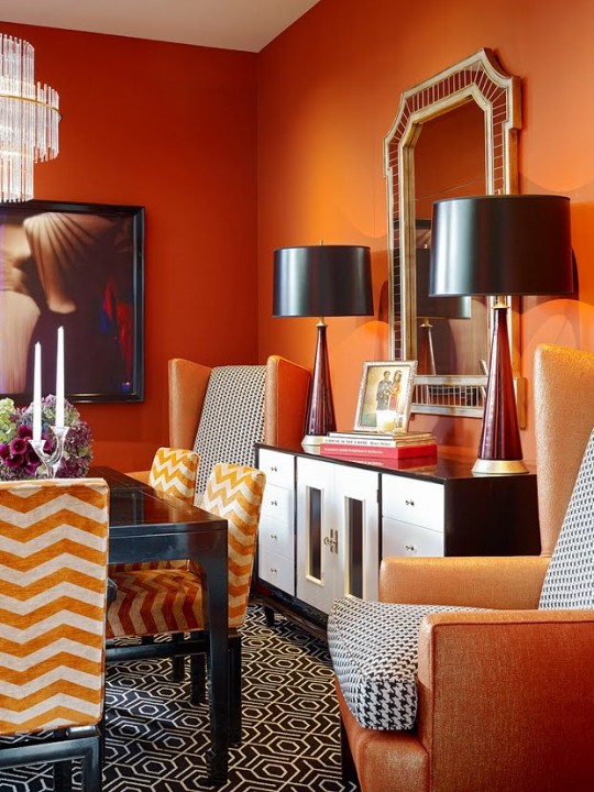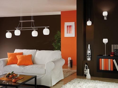 Если же Вы стремитесь создать лёгкую, расслабляющую атмосферу, тогда оранжевый цвет может быть использован в виде различных аксессуаров (подушек, торшеров, пледов) при кремовых стенах и мебели шоколадных оттенков.