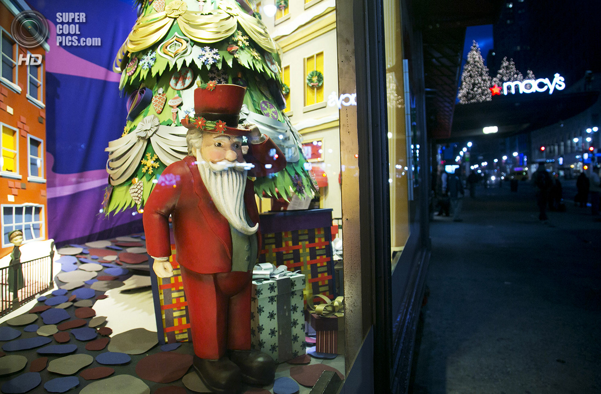 Рождественская фигурка Санта-Клауса в витрине универмага Macy’s.